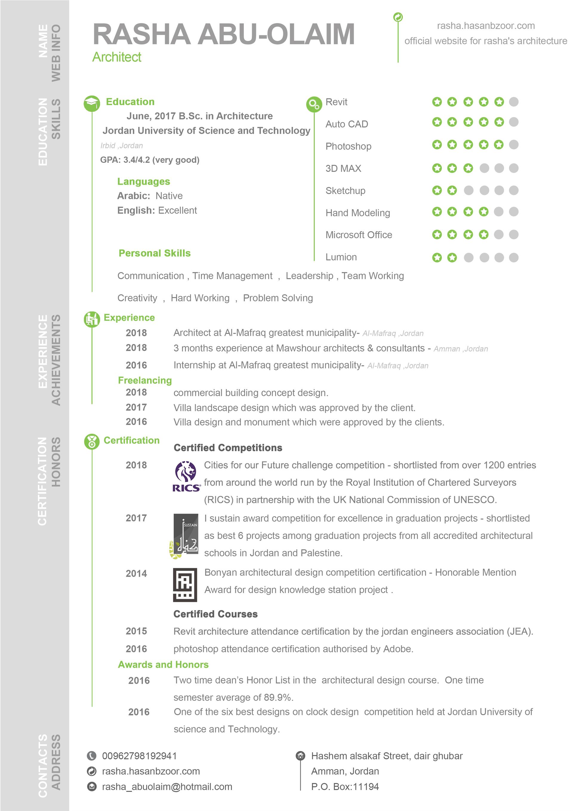 my name is rasha ahmad abuolaim born in mafraq, jordan in 1994. i am always motivated and attentive with extreme passion for aesthetics led me to study architecture at jordan university of science and technology where i graduated in 2017.